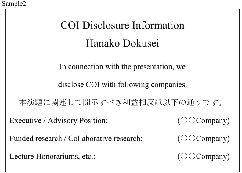 発表者の皆様はCOI(利益相反)の開示をお願いいたします。企業に所属の場合は別企業とCOI 状態にある場合に開示してください。